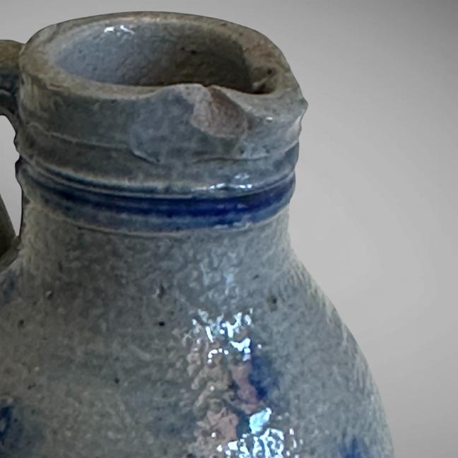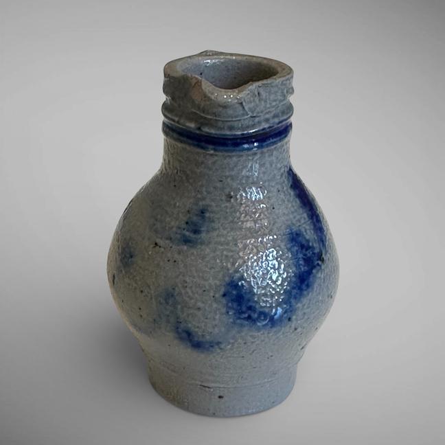 Late 19th to early 20th C. With one tiny chip on the side of spout. Measuring just 3" in height. A wonderful example for a miniature stoneware collection!