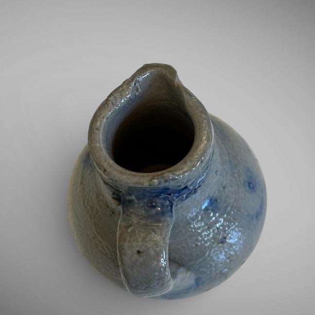 This tiny little stoneware pitcher is decorated in a cobalt blue. Pennsylvania-German.